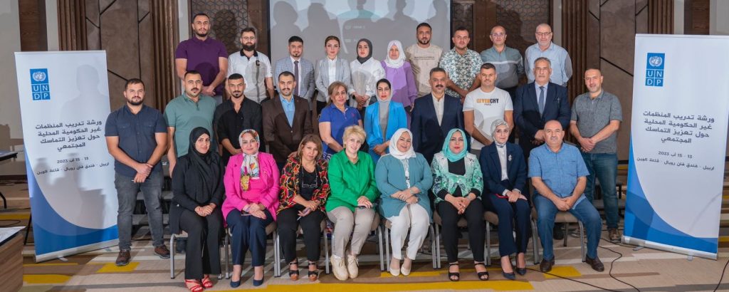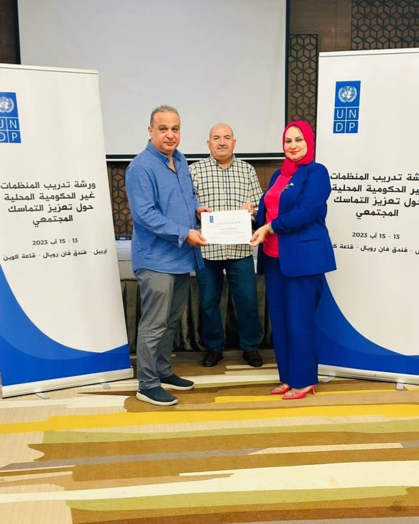 دعوة من منظمة .UNDP. ورشة تدريب المنظمات غير الحكومية المحلية حول تعزيز التماسك. الاجتماعي . في اربيل. . لمدة ثلاثة أيام.. At the invitation of .UNDP. Local NGO training workshop on strengthening cohesion. social. in Erbil. . for three days.